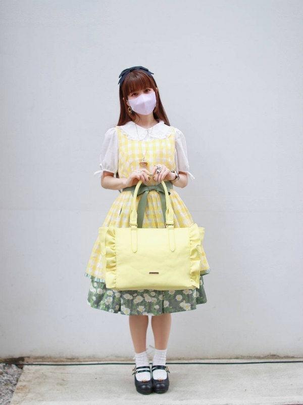 (Goods - Itabag) Luna Haruna x REA RARE Collab OSHI TO DATE (Date With Your Fave) Frilled Tote Bag Honey Citrus [REA RARE]